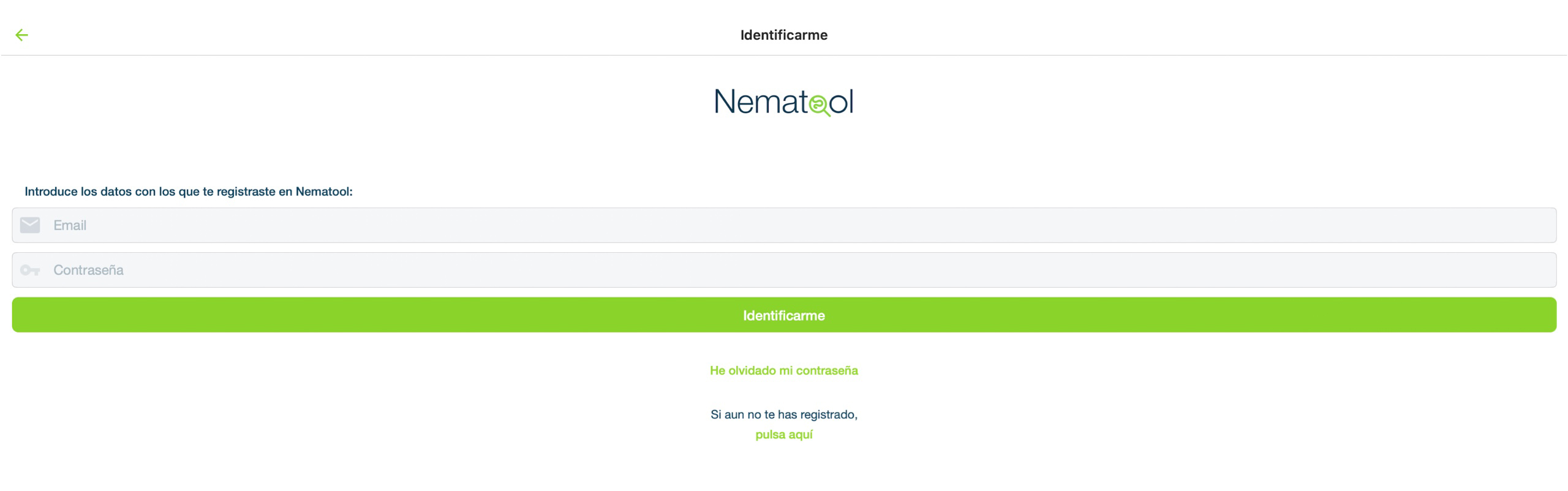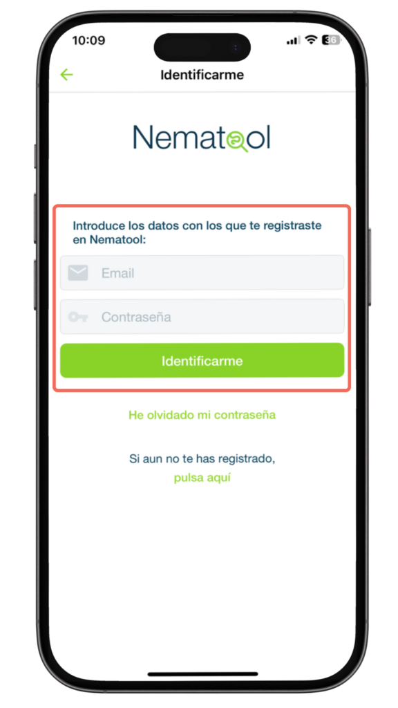 - En el caso de Nematool: Introduce tu email y contraseña de Nematool para acceder.