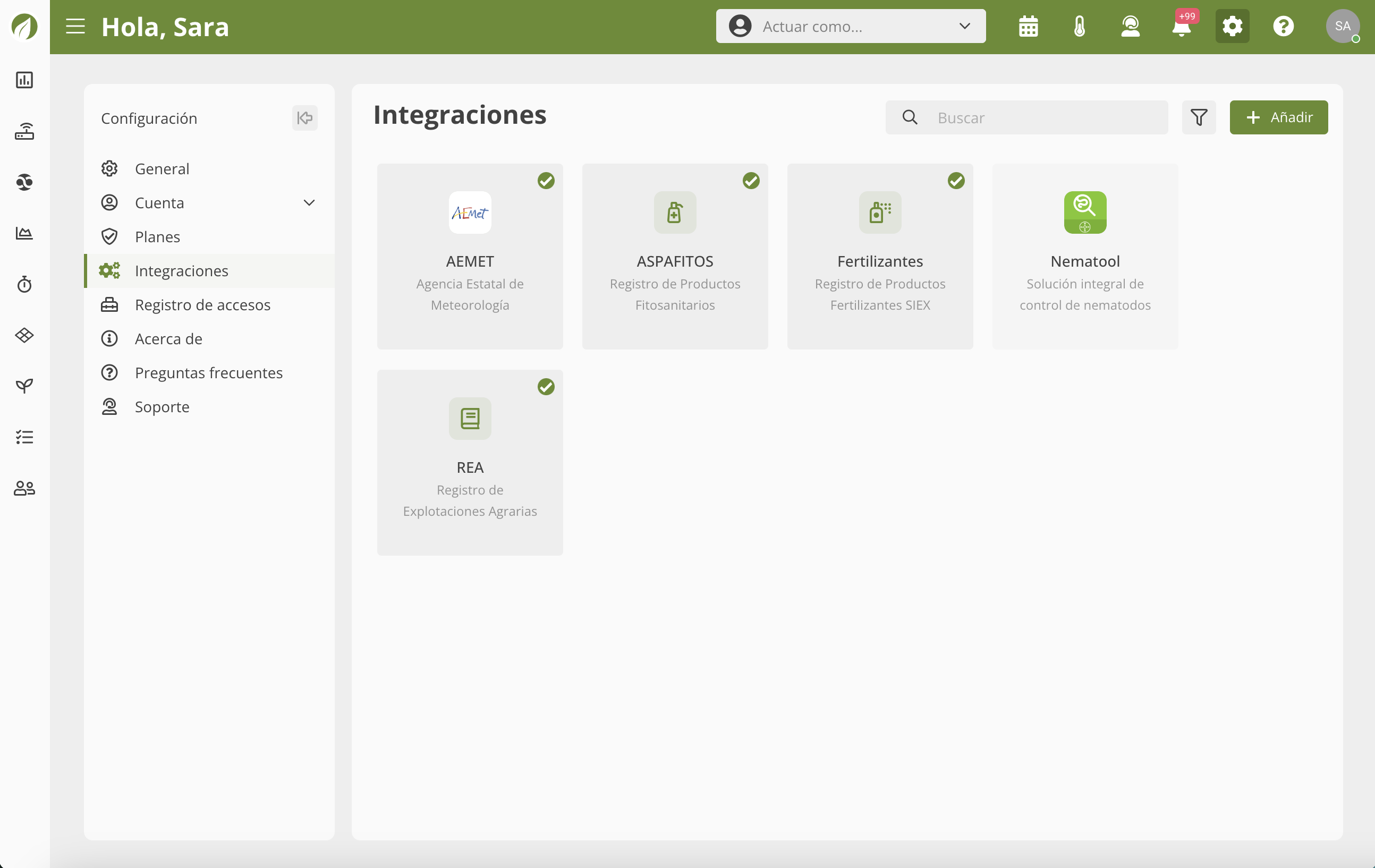 Para asegurarte de si una aplicación está o no activa, puedes ver el ✅ cuando están activas, en el listado de aplicaciones disponibles para integrar en Ikos en tu pantalla principal de «Integraciones«. Dentro podrás conectar o desconectar apps según lo necesites. ¡Así de sencillo!