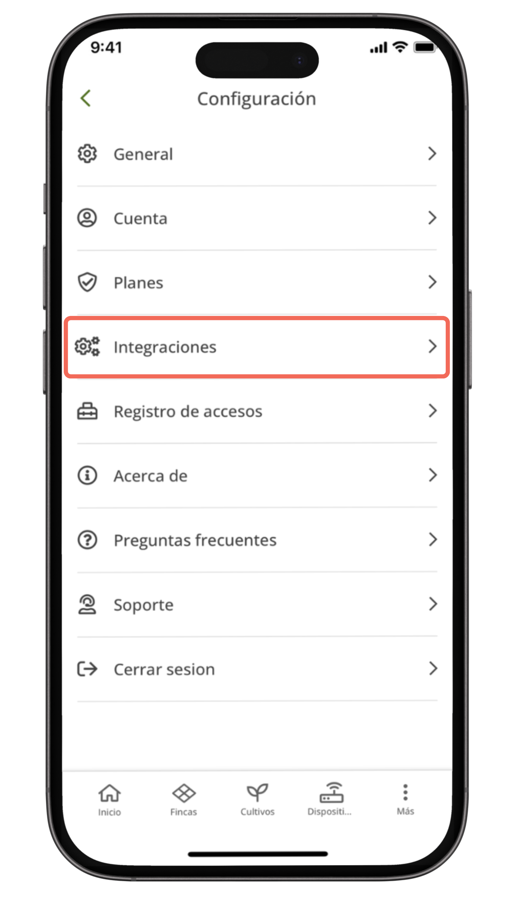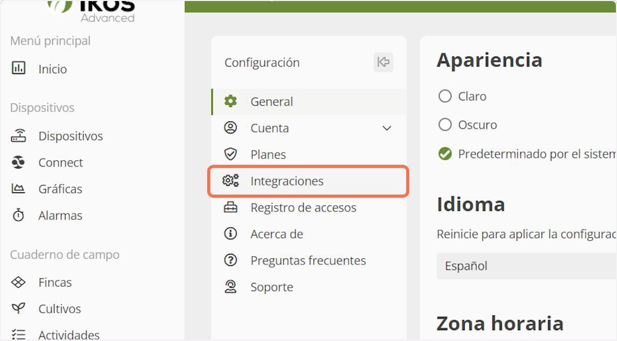 En el menú de Configuración, busca y selecciona «Integraciones» del lateral izquierdo.