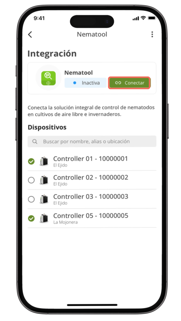 4. Selecciona dispositivos 📋 y conecta 🌐