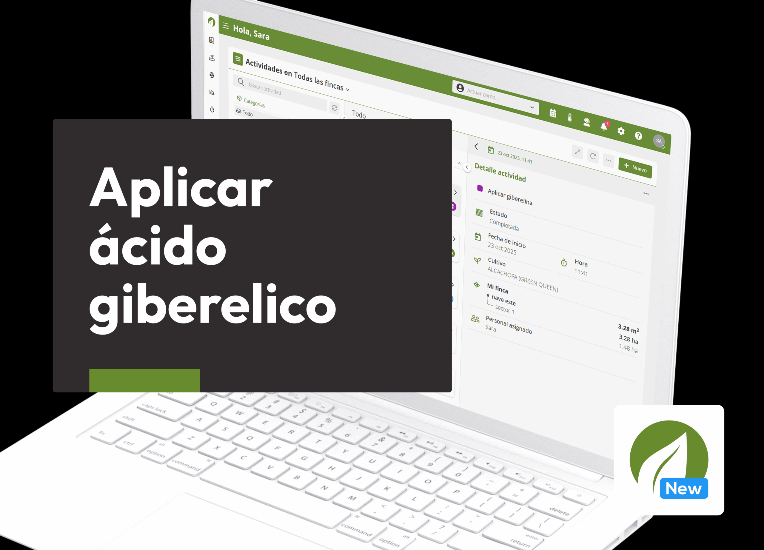 - En la parte superior derecha, selecciona el botón + Nuevo y elige Aplicar giberelina en el menú desplegable.