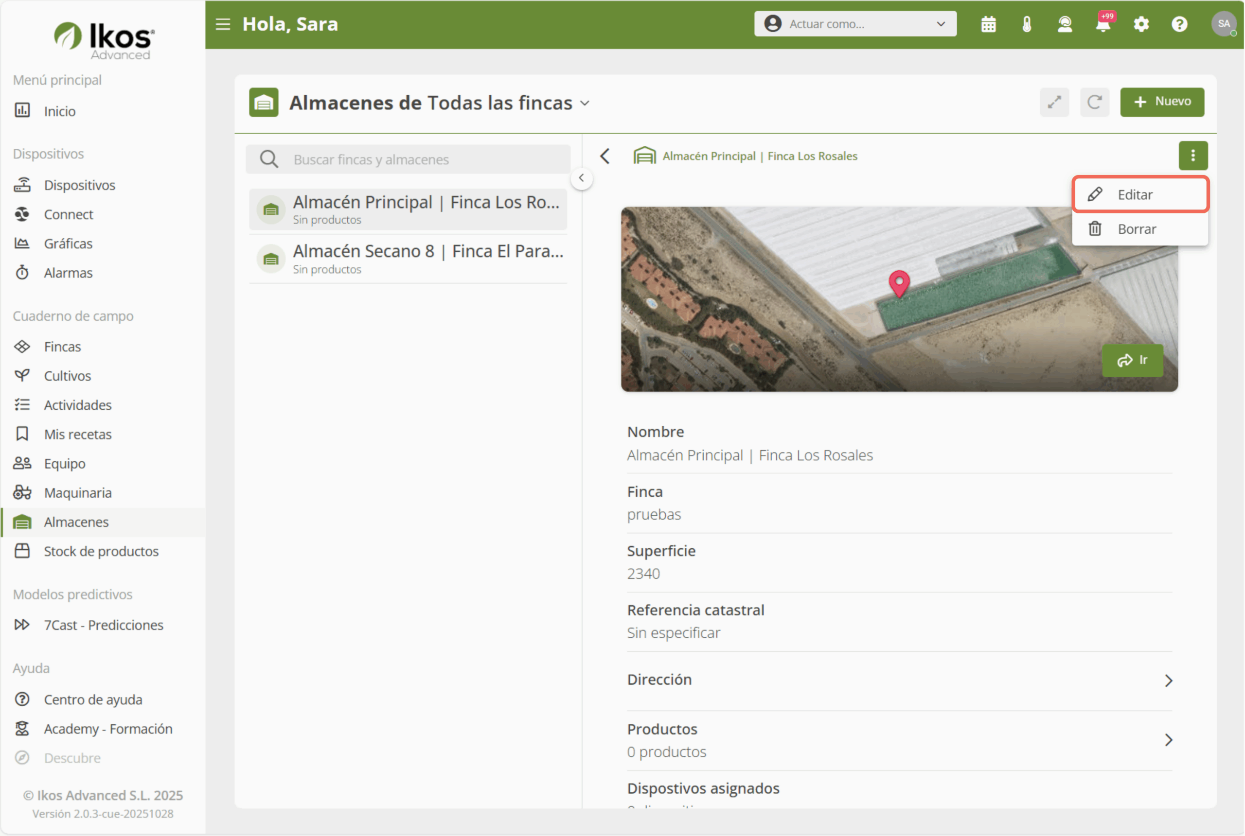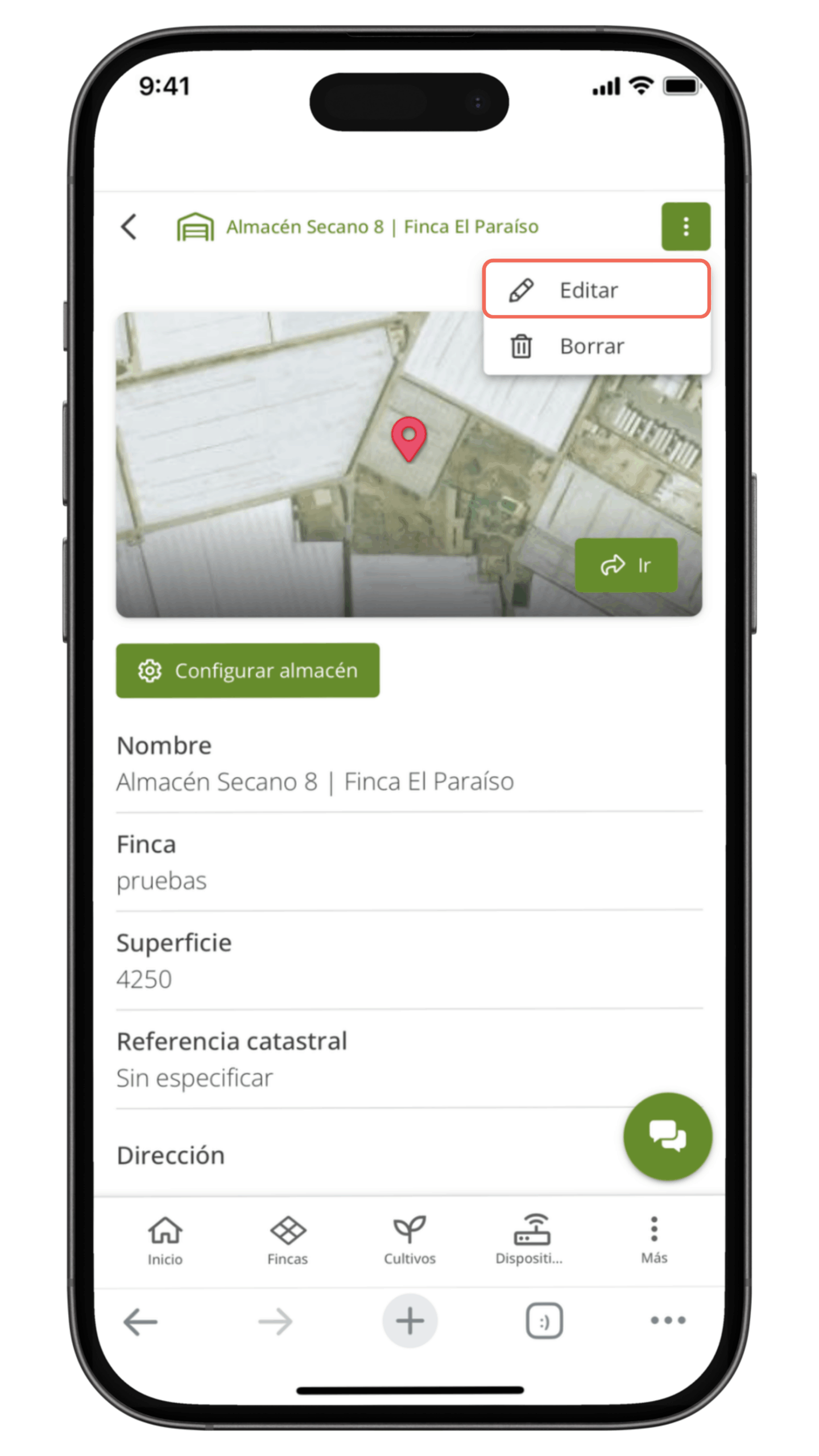 Puedes modificar los datos de tus almacenes desde la app de Ikos para mantener actualizada la información de tus fincas y ubicaciones📍