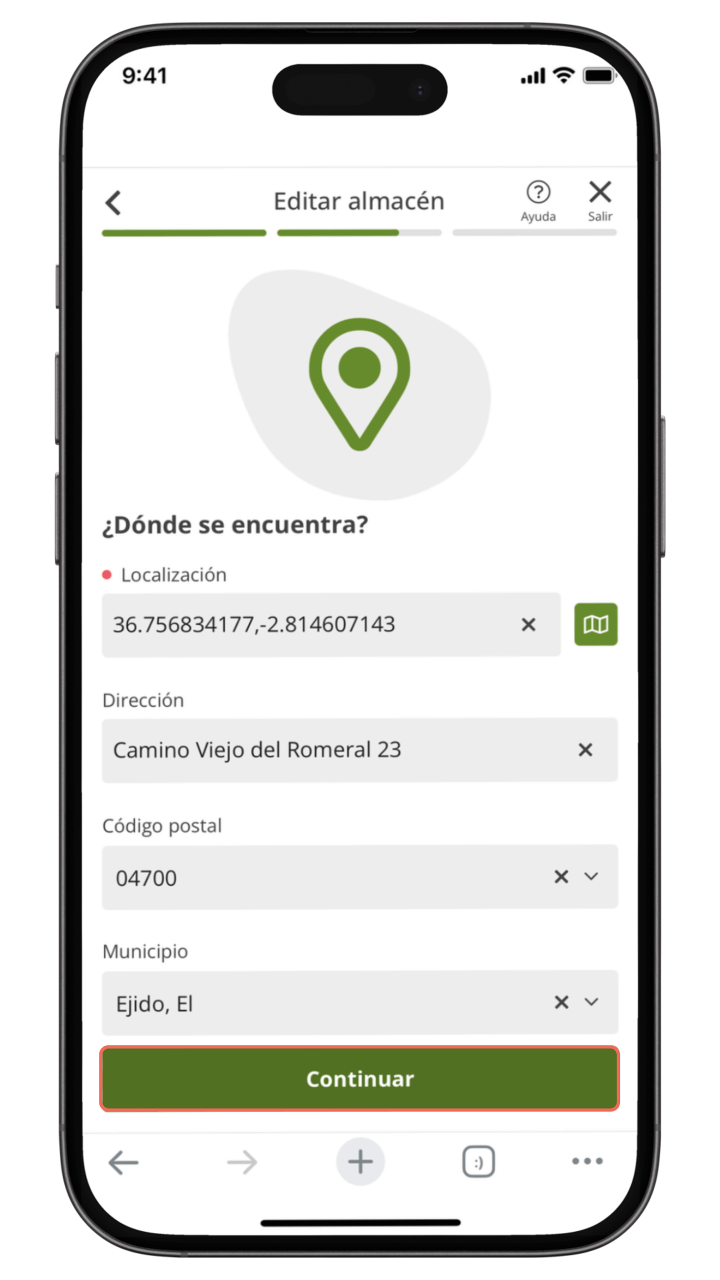 4. Edita la ubicación del almacén 📍