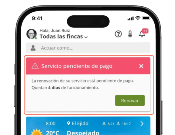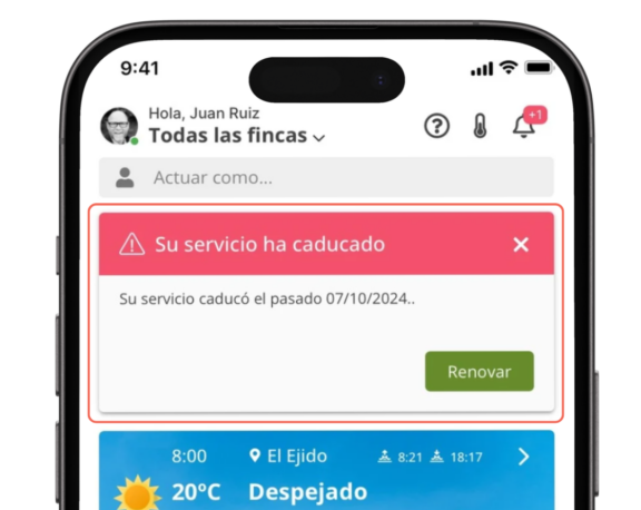 Si no renuevas a tiempo visualizarás otra alerta indicando que tu suscripción ha caducado. Deberás pagar el importe de la renovación de la licencia pulsando el botón verde de «Renovar». Si no renuevas en ese momento la suscripción, dejarás de visualizar tus datos en la plataforma aunque podrás seguir teniendo acceso a la app.