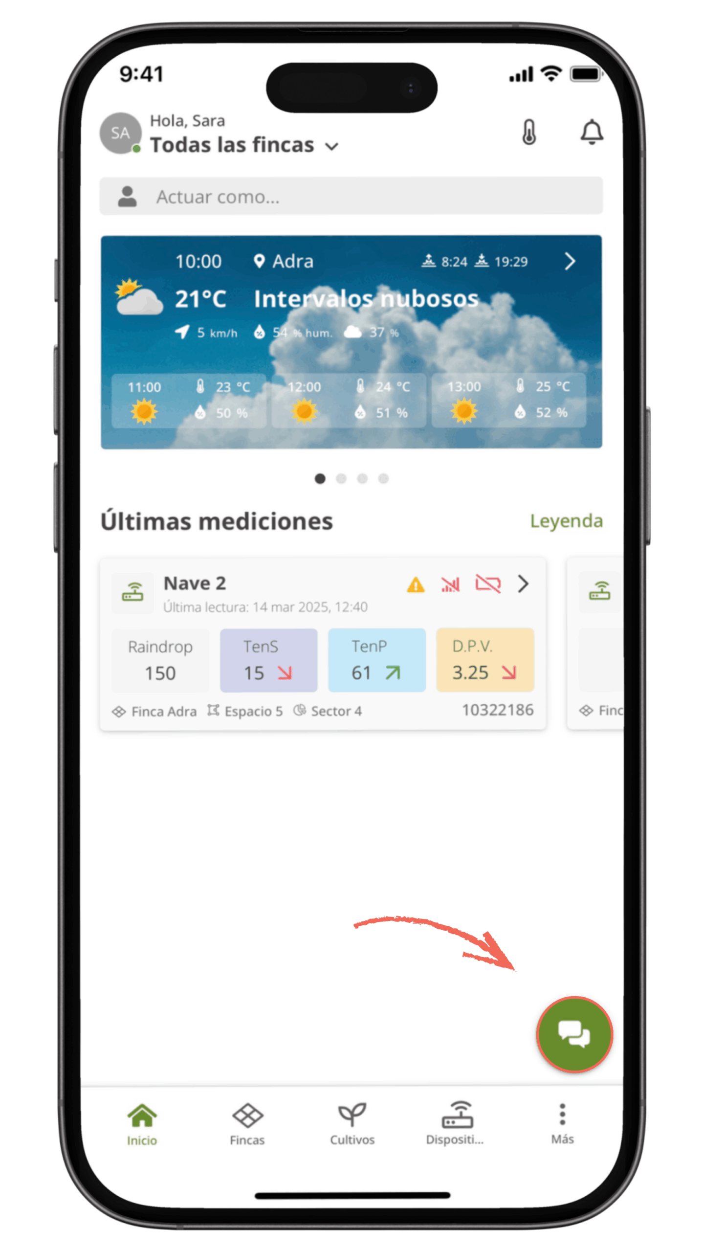 - En la esquina inferior derecha de la pantalla, pulsa el icono del chat. Se abrirá el asistente de soporte, donde podrás elegir el tipo de ayuda que necesitas.