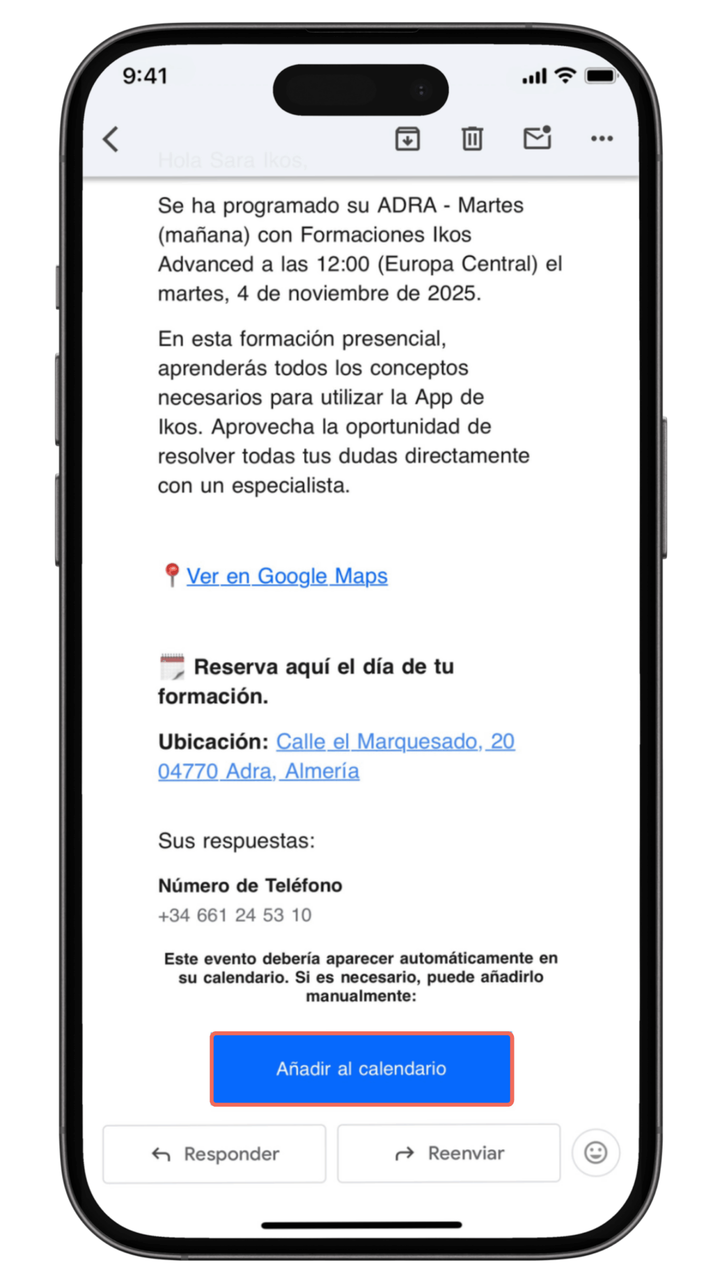 Puedes reservar tu formación directamente desde el chat de soporte en la app. El proceso es rápido y queda confirmado por correo 📬